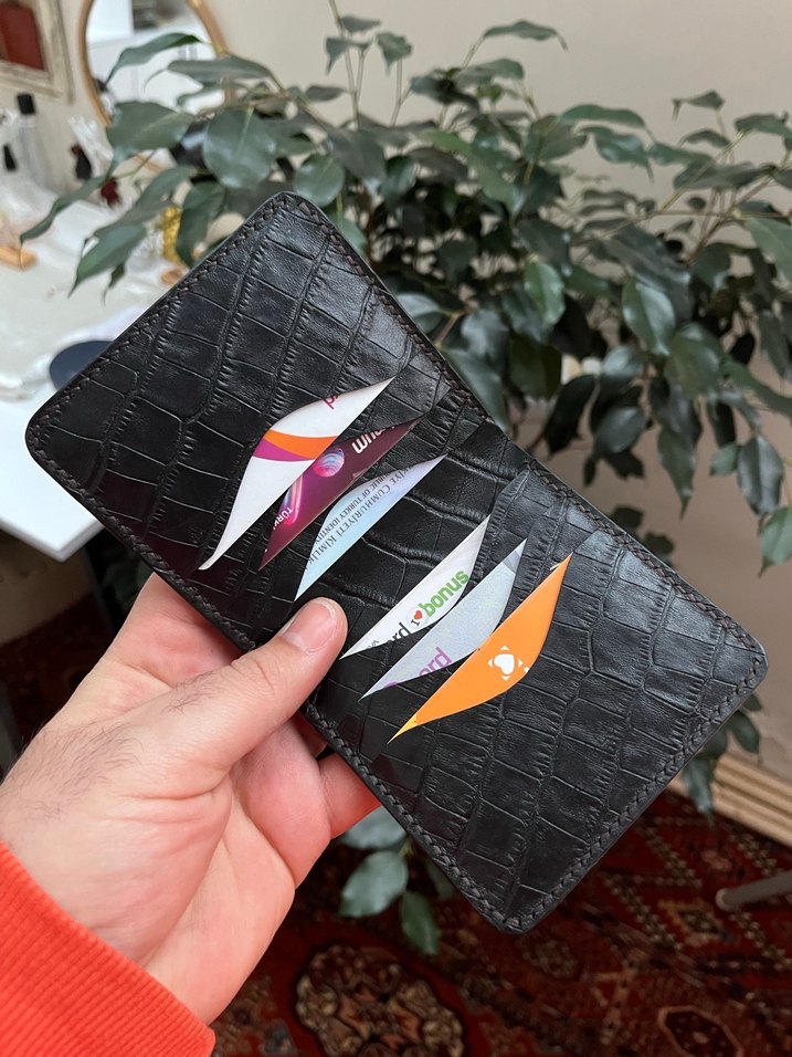 Siyah timsah deseniyle tasarlanmış erkek cüzdanı, çoklu kart bölmeleriyle düzen sağlar. İş ortamına uygun, trend belirleyici ve avangart bir tarza sahiptir. 6 Kart Bölmesi Nakit Para Bölmesi