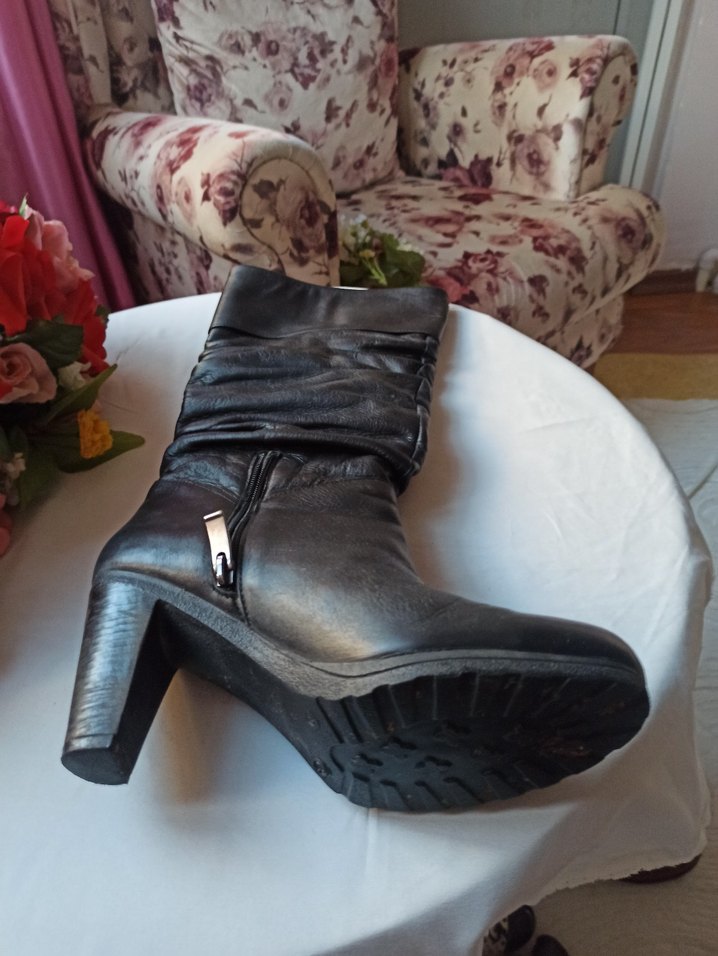 Siyah, gercek deri, rahat, yumusak , ayak baldirina rahatca uyum saglayan cizme