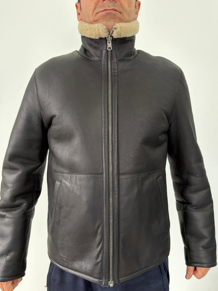 Siyah Gerçek deri kürk çift taraflıMont, Fermuarlı, Uzun Kollu