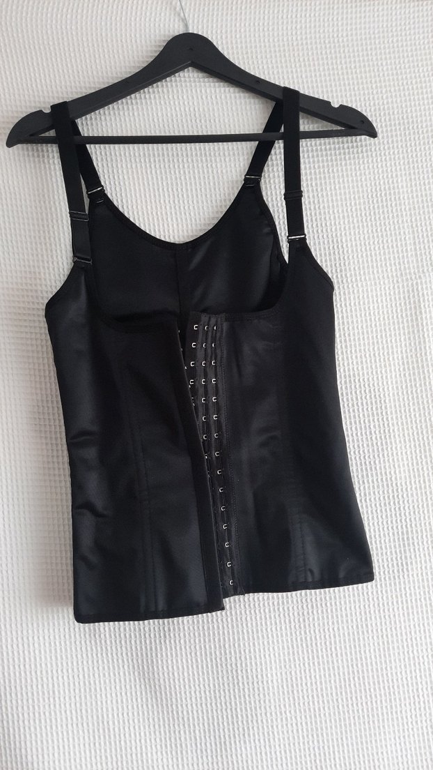 kancalı kapamalı, ayarlanabilir askılı, midi boy, vücuda oturan siyah korse