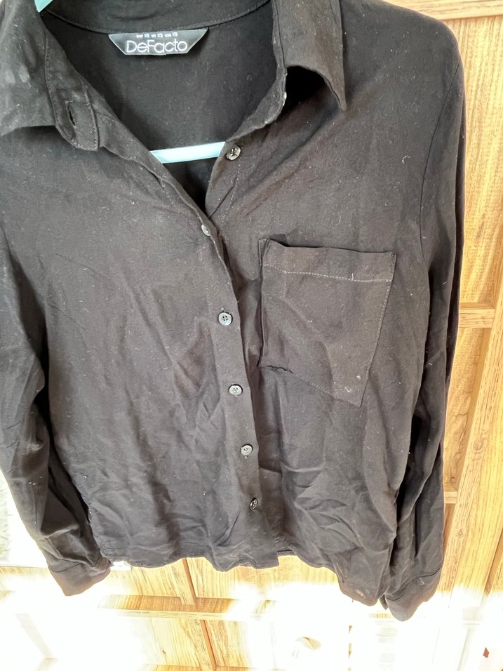 Herhangi bir defosu yoktur giymediğim için satıyorum ışıktan siyah değilmiş gibi çıkmış fakat ürünün rengi siyahtır solma yoktur