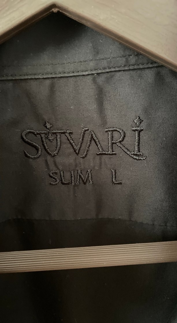 Siyah, nakış detaylı gömlek notch yakalı . Uzun kollu, parlak kumaşlı, normal kesim ve gotik tarzda, ofis için uygun.
