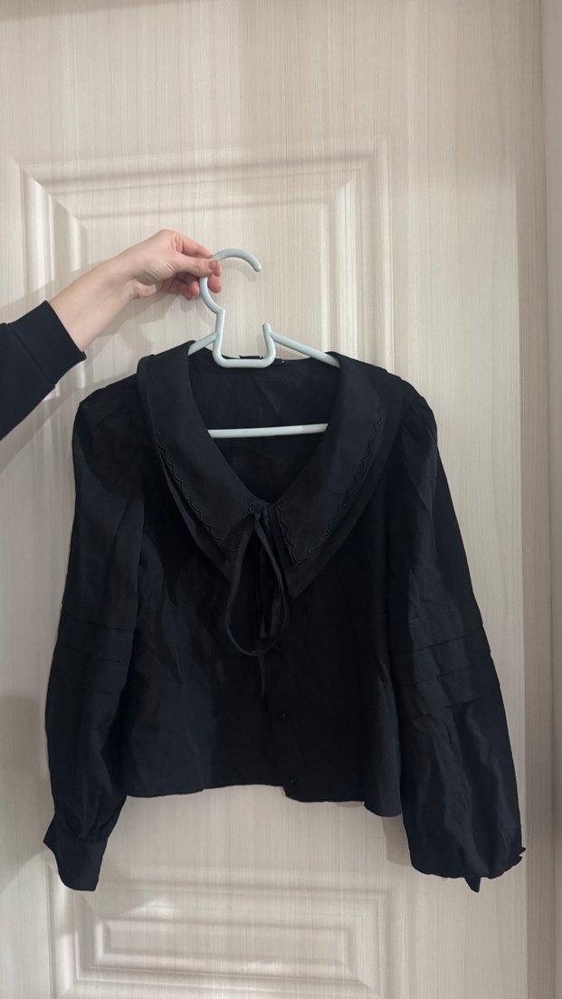 Siyah keten gömlek, uzun kollu ve yakalıdır. Rahat kesim ve düğmeli ön detayına sahiptir, günlük kullanıma uygundur.