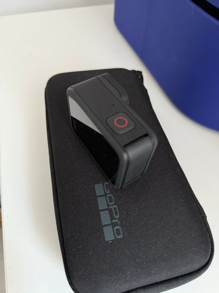 Yüksek kaliteli video ve fotoğraf çekimi için siyah GoPro aksiyon kamerası ve koruyucu kılıfı. Neredeyse hiç kullanmadım. Suya hiç girmedi.