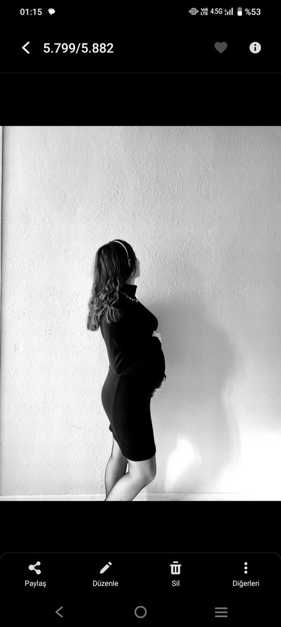 Siyah, pamuklu ve midi uzunlukta bu hamile elbisesi minimalist goth tarzında, rahat ve şık günlük kullanım için uygundur.