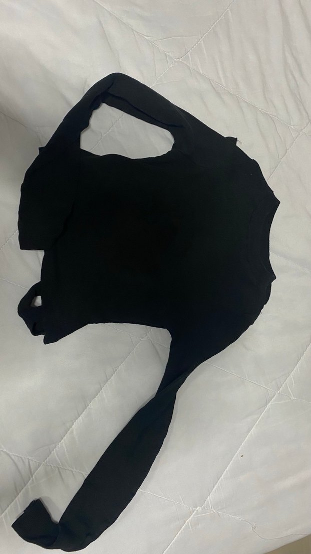 Siyah goth tarzı midi crop top, sırt dekolteli.