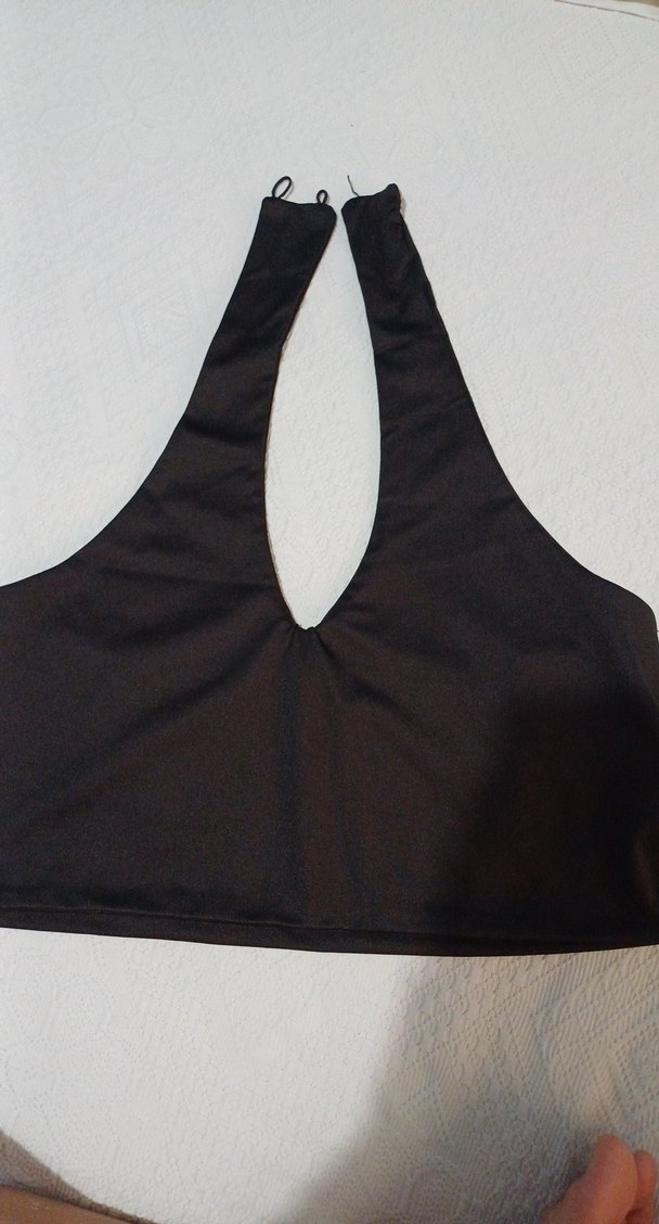 Siyah goth tarzı, desensiz ve midi uzunlukta sporcu sütyeni. Koyu tonlarıyla athleisure giyime uygun.