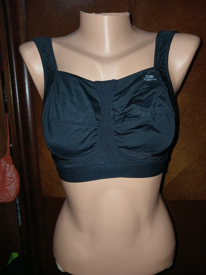 Siyah renkte, geniş askılı ve desensiz kumaştan yapılmış goth tarzı spor sütyeni, midi uzunluğundadır. orijinal kalemci'den alındı 90e beden 56 kilo d75 takana uygun olabilir özellikle c75 takana daha rahat olur spor hayatı bittiği için satışta koşuda kullanılan bir sütyen Kulp o ölçümü 18 13'tür yüksek yer 18 genişlik 13'tür
