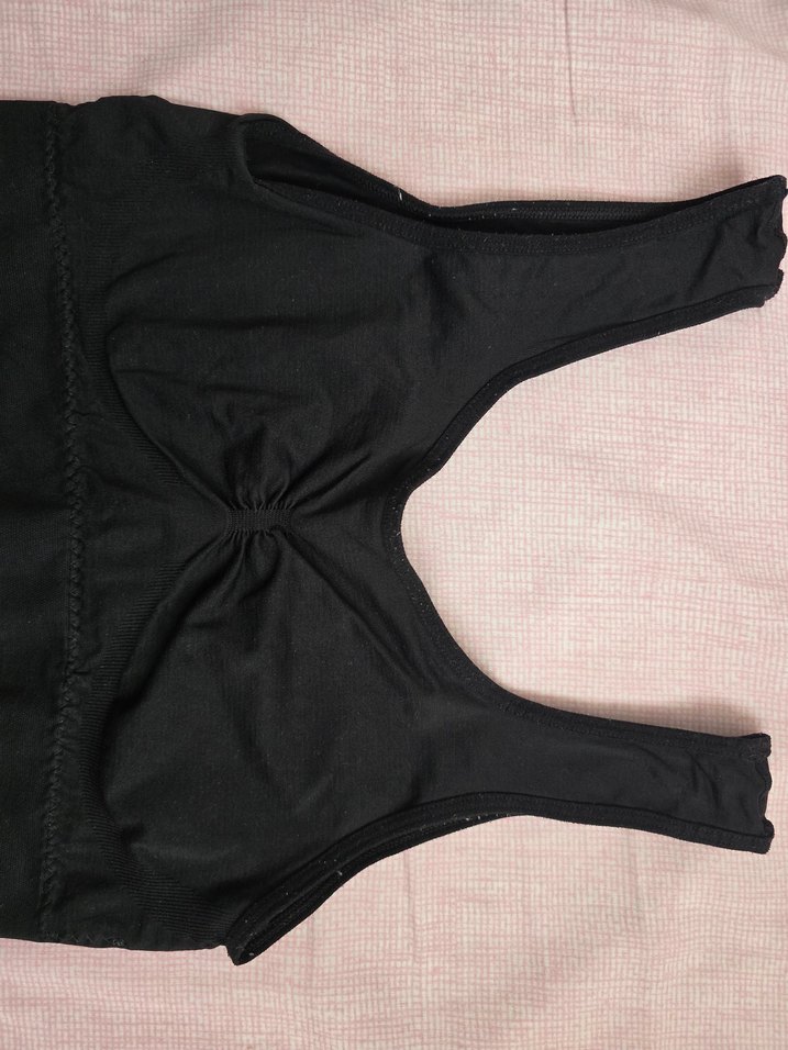 Siyah renkte, goth tarzı ve normal boyda, rahat kesimli sporcu sütyeni.