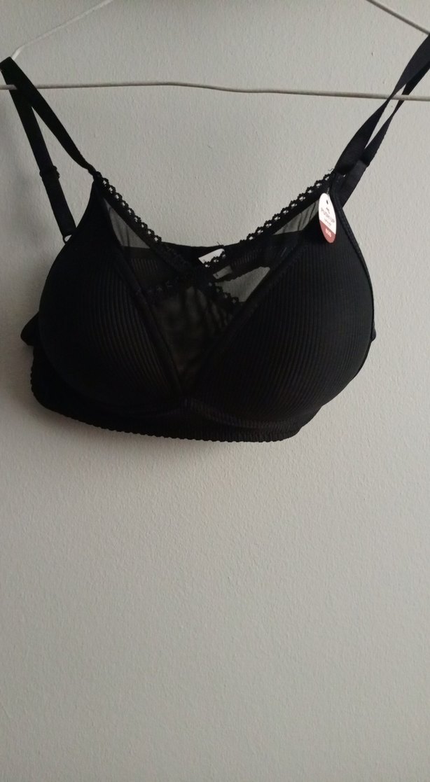 Siyah, goth tarzı sütyeni. Desensiz, ayarlanabilir askılı ve midi boyda, normal uzunlukta destek sağlar.