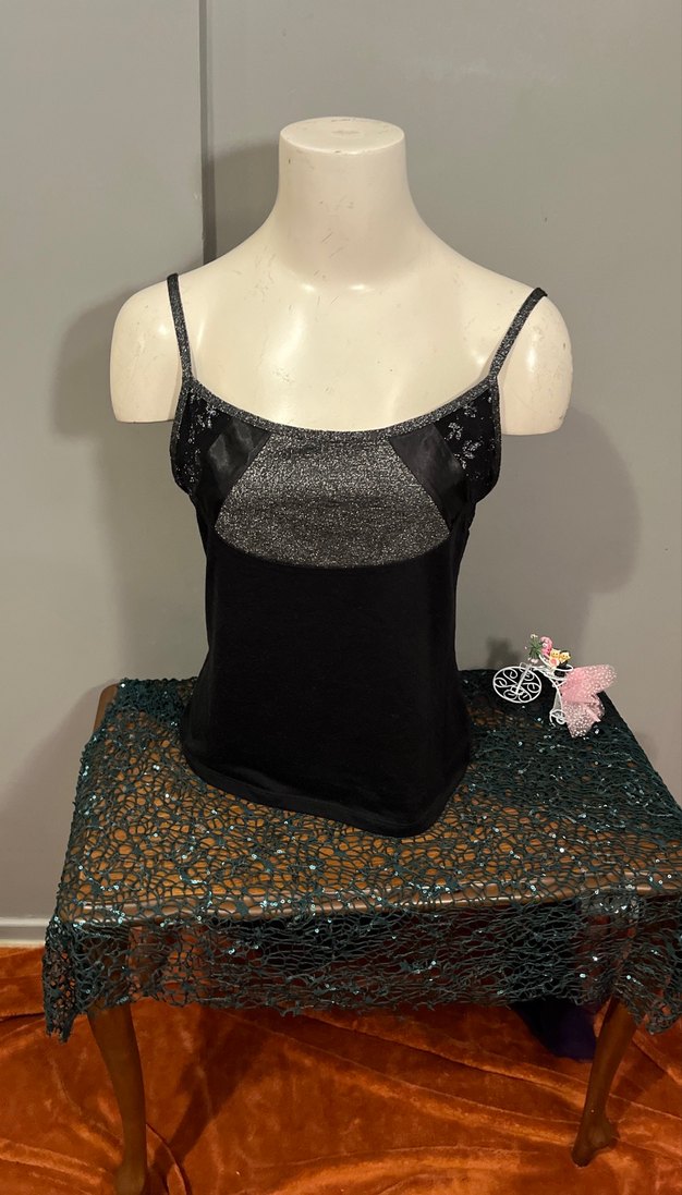 Siyah renkli, dantel detaylı ve ince askılı gotik tarzda mini büstiyer. Sentetik kumaştan üretilmiş, parti için uygun.