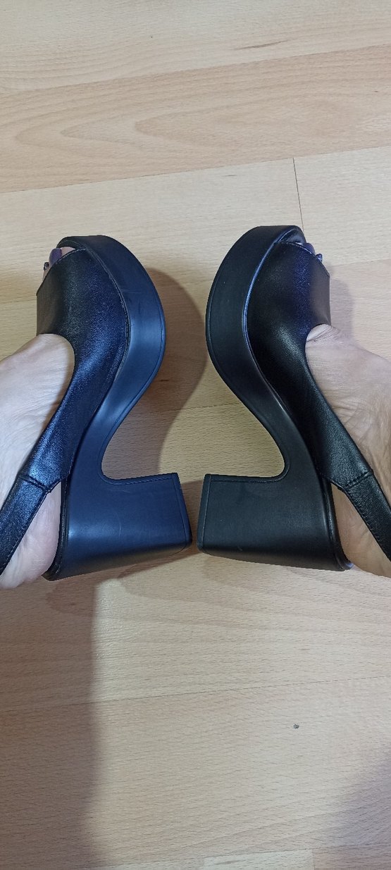 Tek kez bir davette giydim ihtiyaç fazlası. Magaza fiyatı 3bin TL.dir. Siyah gotik dolgu topuklu kadın ayakkabı, kauçuk tabanlı ve tokalı kayışlı. Romantik akşamlar için uygun, desensiz ve avangart tarzda. #deridir #ziya marka