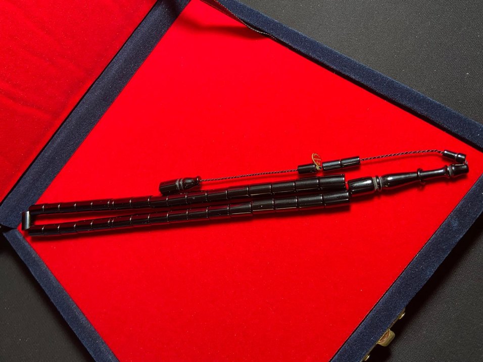 Klasik tarzda, koyu siyah renkte gotik erkek tesbih. Gösterişli ve geleneksel bir görünüm sunar. kutusunda gönderilir