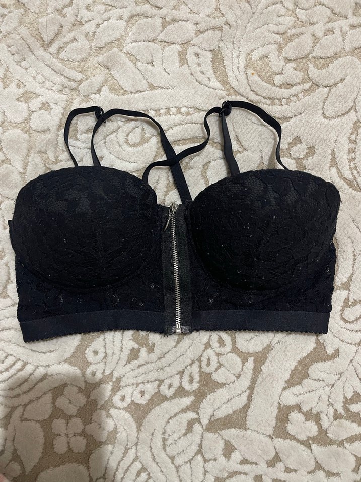 İçi dolgulu bralet önden fermuarlı siyah dantelli sütyen miorre markası arka askıları çapraz şeklinde, 80B beden dantelli bralet