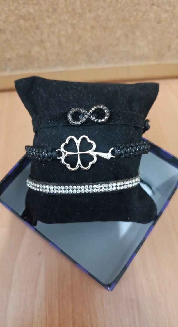 Kilitli ve nakış desenli, gotik ve minimalist tarzda üç siyah kadın bileklik seti, günlük kullanıma uygun.