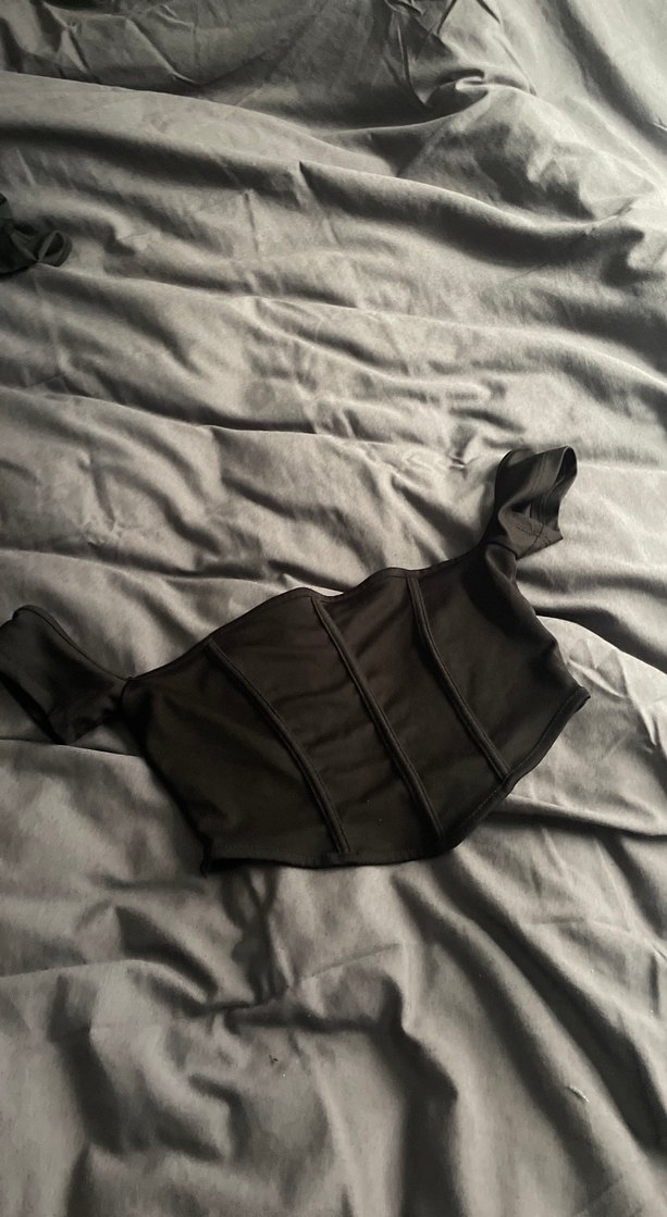 Siyah gotik tarzda, straplez yakalı ve askılı, kemerli, vücuda oturan bu midi uzunlukta bustiyer, yumuşak sentetik kumaştan üretilmiştir. Günlük kullanıma uygundur.