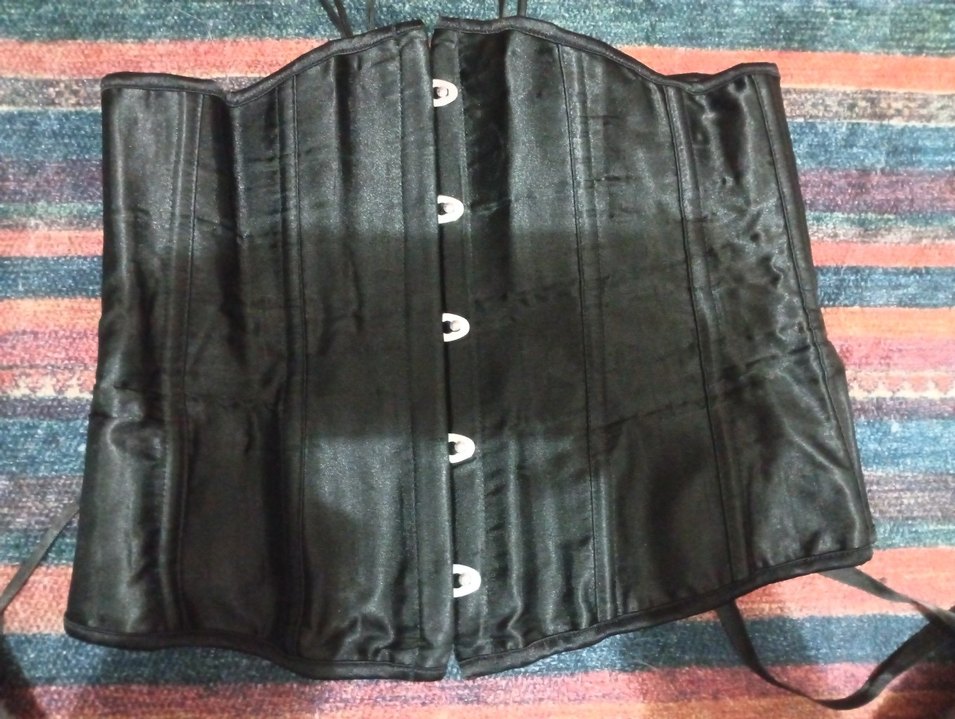 sentetik kumaştan yapılmış,25-30cm korse bir iki kere giydim bol diye satiyorum küçük bedeni var çok memnunum üstündeki kırışıklık izi sıkmaya çalıştığım içindi ütüeyince geçer