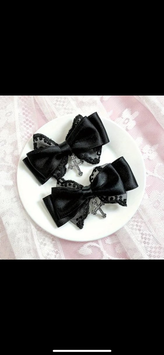 Sentetik kumaştan yapılmış, dantel detaylı ve haç süslemeli siyah gotik tarzda klasik zarif saç tokası.