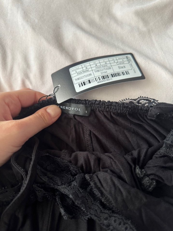 Bu siyah hamile eteği, fırfır detayları ve baskılı deseniyle gotik stile uygun, sentetik kumaştan yapılmıştır. Günlük kullanım için idealdir.