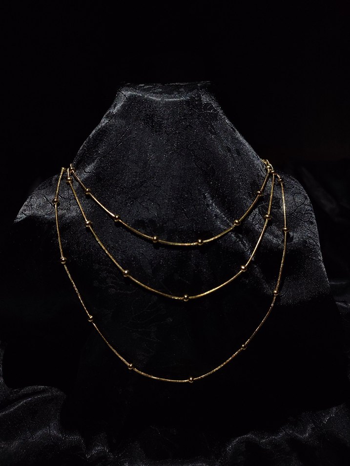 Siyah gotik tarzda, kürk detaylı ve işlemeli desenli midi uzunlukta kolye. Günlük kullanım için uygun, koyu ve şık bir görünüme sahip.