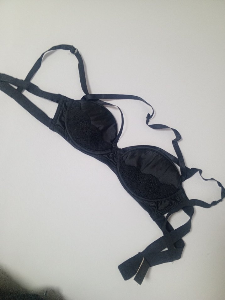Desensiz siyah gotik midi sütyen, dantel ve askı detaylı penti 75B yazsa da 70 beden için daha olur gibi hiç kullanılmadı