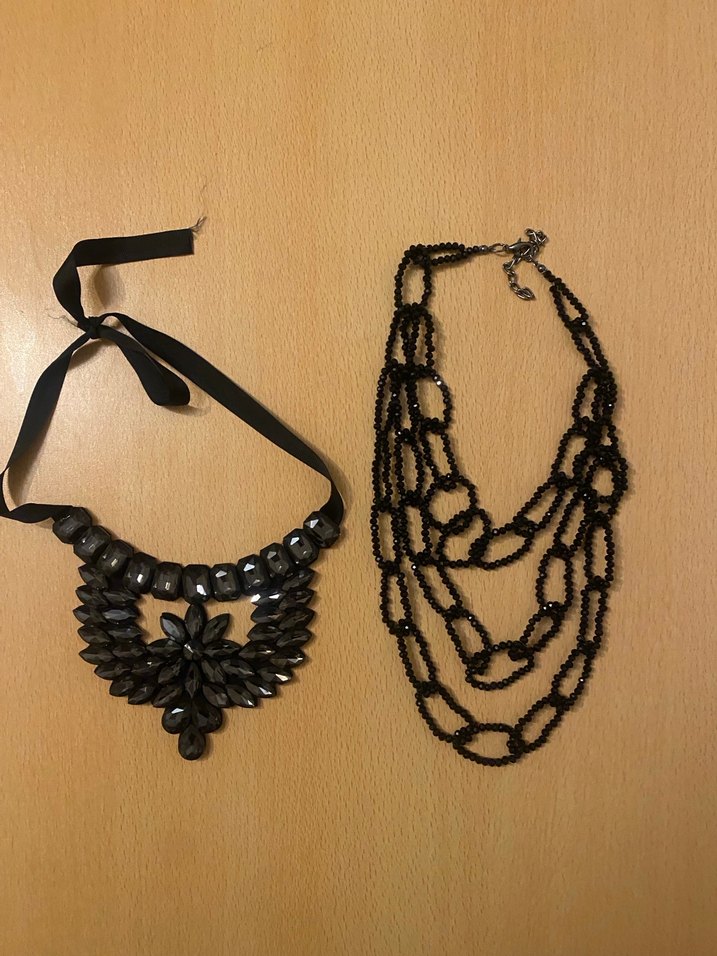 Gotik ve bohem tarzda, boncuklu ve nakışlı detaylara sahip kısa siyah kadın kolyeleri, günlük kullanım için uygundur.