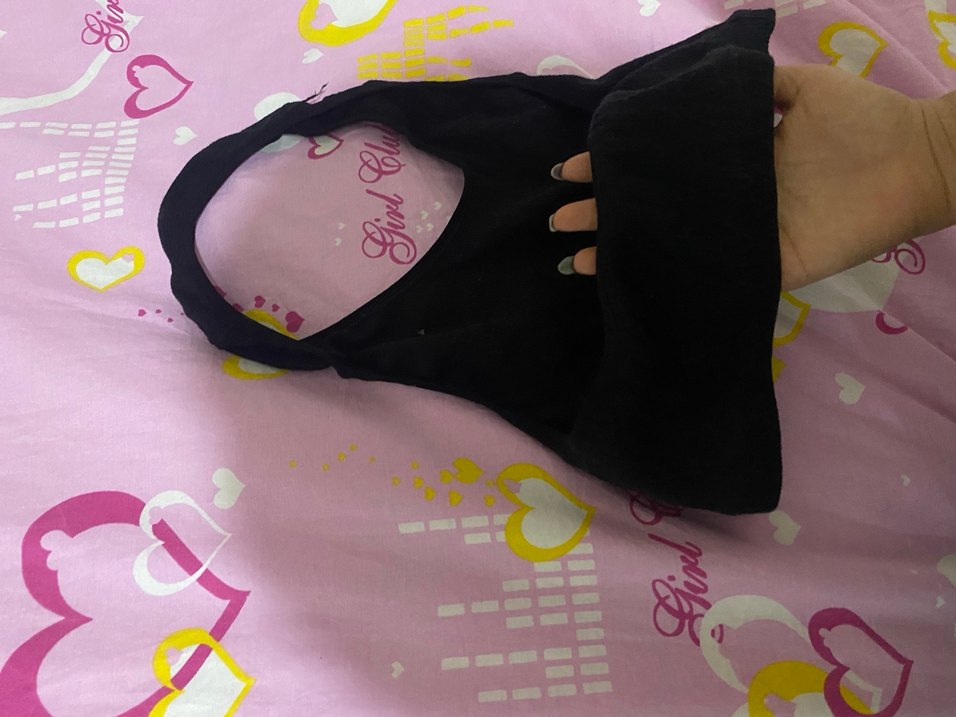 Siyah renkte, gotik tarzda, baskılı ve minimalist tasarımlı midi uzunlukta crop. Basit ama şık bir görünüm sunar.