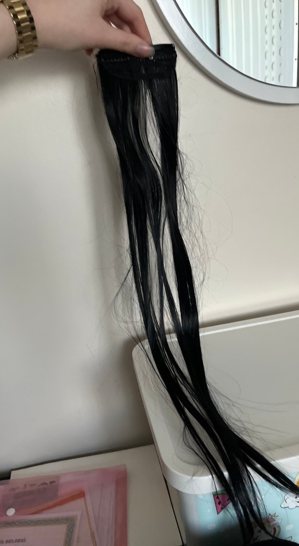 Siyah sentetik kumaştan yapılmış, püsküllü gotik tarzda modaya uygun saç aksesuarı. 3 parça çıtçıtlı postiş 60 cm 135 gram 130-140 derece ısı uygulanabilir