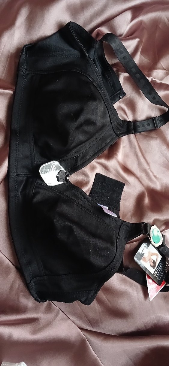 Siyah renkte, gotik tarzda, normal uzunlukta ve desensiz spor sütyeni. Ayarlanabilir askıları vardır.