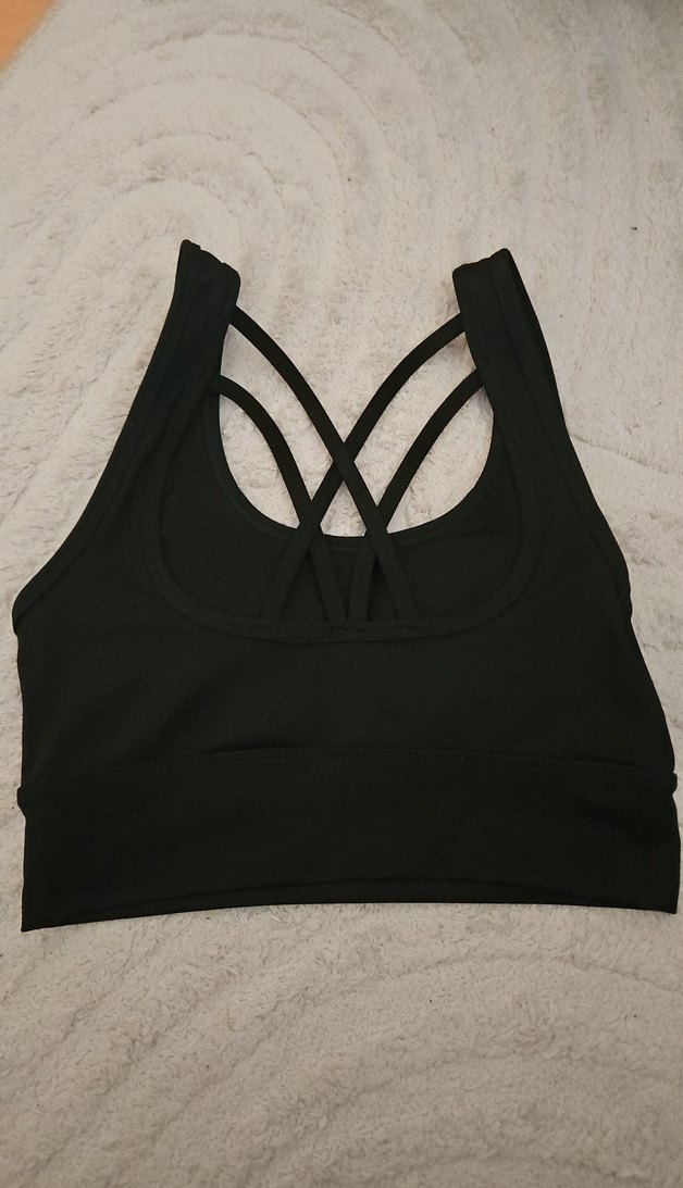 Çapraz askılı, normal uzunlukta siyah gotik tarzda sporcu sütyeni.