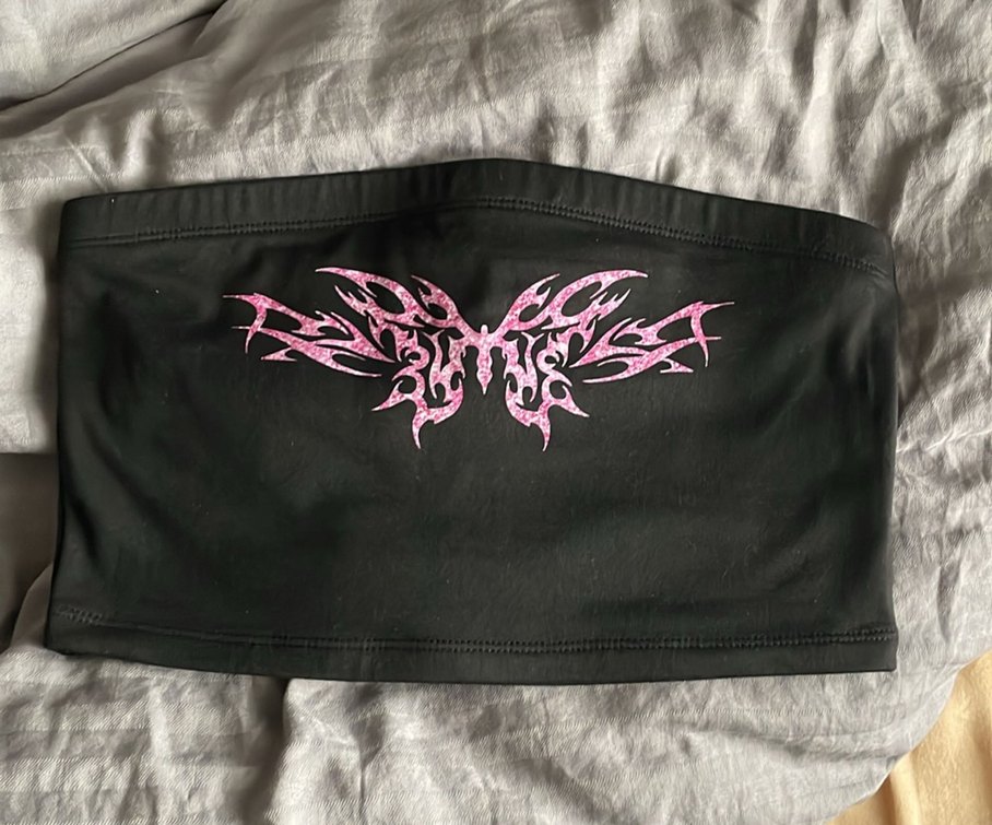 Siyah Gotik Straplez Baskılı Büstiyer