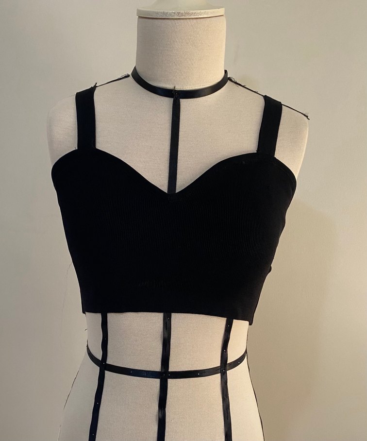 Siyah Gotik Strappy Büstiyer