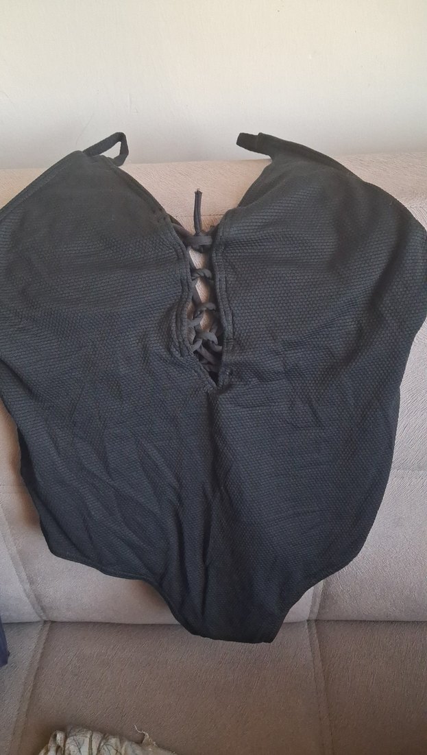 siyah, strappy askılı, vücuda oturan mayo. tertemiz pentinin ürünü ama etiketi kesmişim
