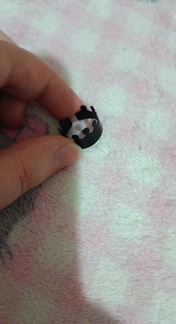 Siyah renkte, taç şeklinde gotik desenli, düğmeli tarzda kadın yüzüğü, grunge punk ve rock punk havası verir.