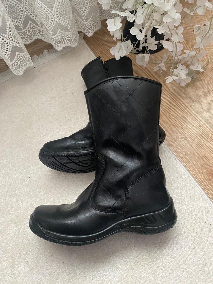 Siyah renkte, dolgu topuklu ve tokalı gotik tarzı kadın botu. 1 kaç hafta kullanıldı günlük kullanıma uygun.