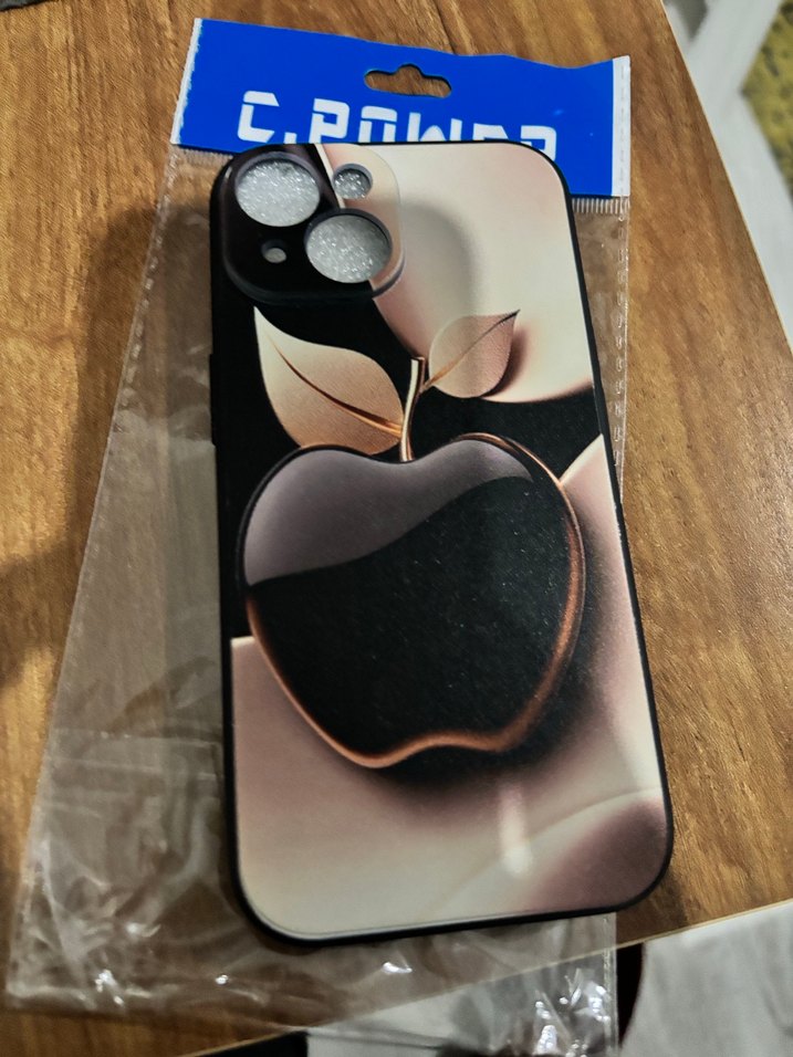 Parlak yüzeyli, koyu kahverengi gotik tarzda büyük elma desenli telefon kılıfı. Telefonun arka ve yanlarını kaplar.