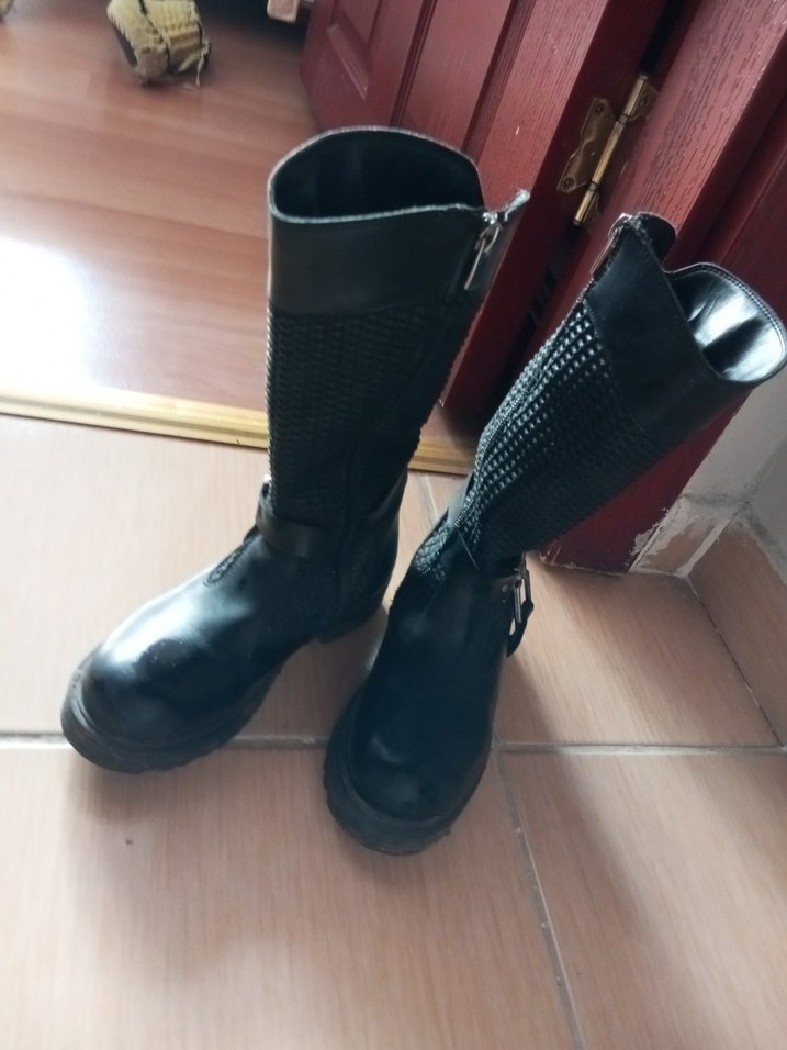 Siyah, tokalı ve blok topuklu, kauçuk malzemeden yapılmış gotik tarzda kadın botları. Günlük kullanım için uygun, rock punk havası verir.