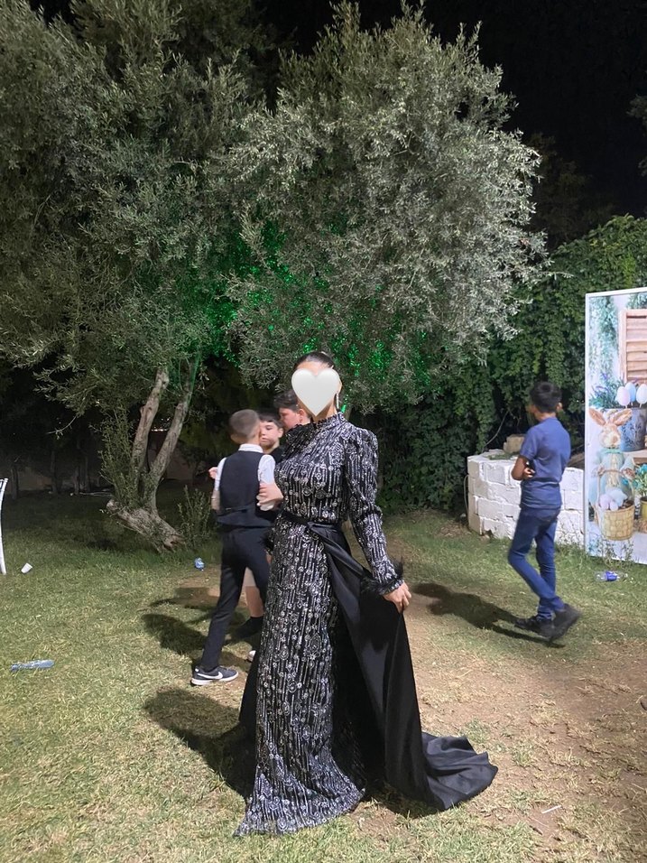 Bu siyah abiye elbise, uzun kollu, yüksek yakalı ve drapeli desenli tasarımıyla gotik düğünler için uygundur.