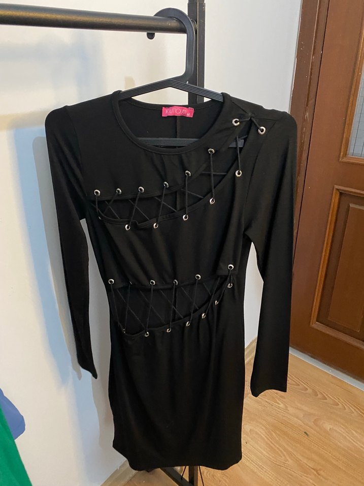 Siyah Gotik Uzun Kollu Kadın Elbise