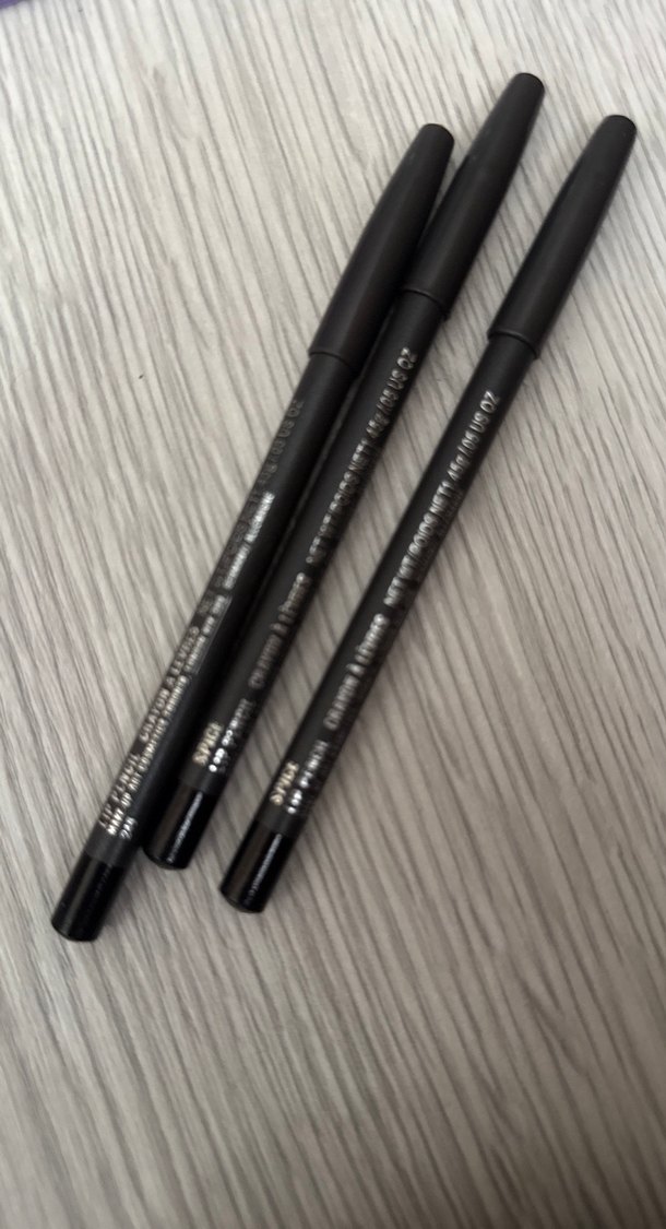 Üçlü siyah göz kalemi seti, belirgin ve canlı renklerle göz makyajınızı tamamlar. ✏️