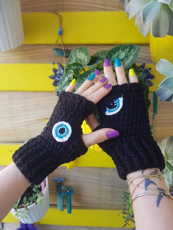 Siyah örgü, parmakları açık eldivenler, rahat ve gotik tarzda göz nakışlı. Bohem ve retro stiller için uygun. Eldivenlerimizin tamamı el örgüsü ve özel tasarımdır. Rengarenk, cıvıl cıvıl, neşeli eldivenlerim, kışın içinizi ve gönlünüzü ısıtacak. Sıfır üründür. Bedeni standarttır. Eldiven çeşitlerim ve ürün yelpazem oldukça geniştir. Lütfen mağazamı ziyaret edip ürünlerimi inceleyin.