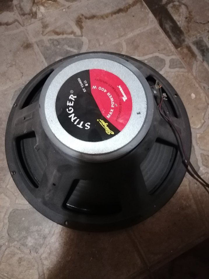 80W maksimum güç kapasitesine sahip siyah ve gri müzik sistemi hoparlörü. Kablolu bağlantı ve dayanıklı yapıya sahiptir.