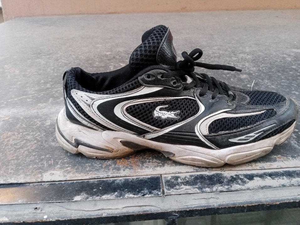 Siyah ve gri renkte, bağcıklı, düz tabanlı kauçuk erkek spor ayakkabısı. Sokak stili ve spor şıklığı için uygundur. ♀️