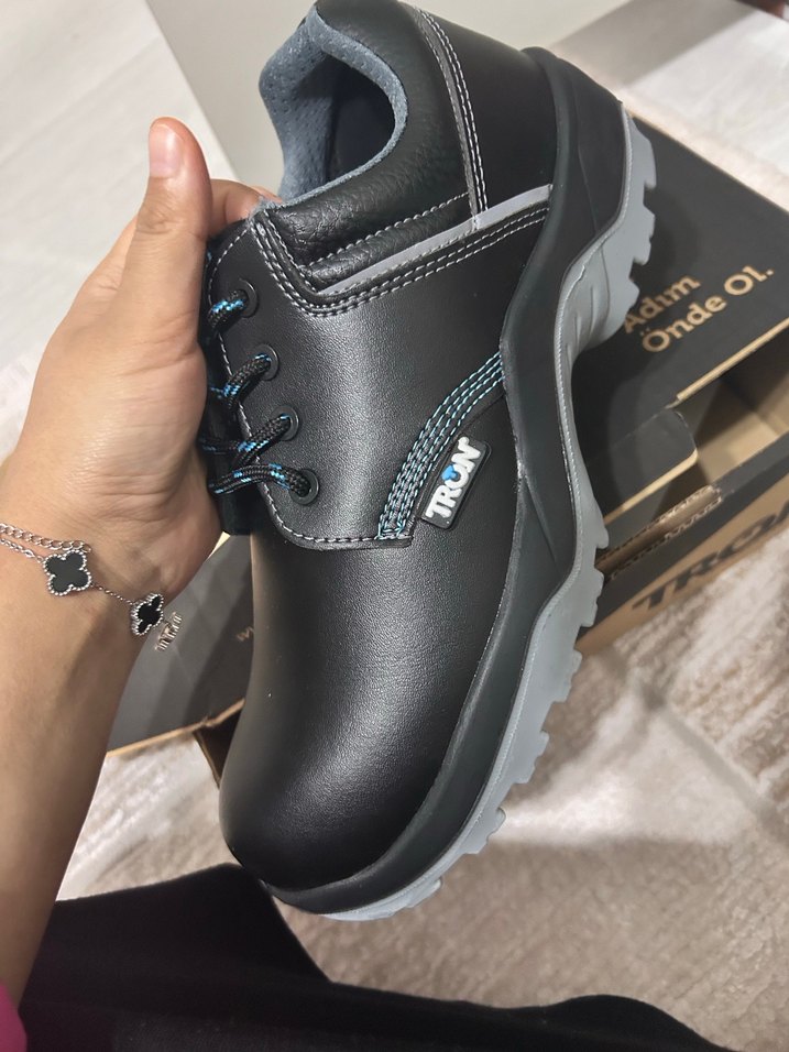 Siyah ve gri renkte, kauçuk tabanlı bağcıklı erkek outdoor ayakkabısı. Sıfır. Sadeçe iç kısmı yok süngeri o yüzden 1000 tl fiyata yardımçı olurum yine. Kışlık içinde uygun ayakabı