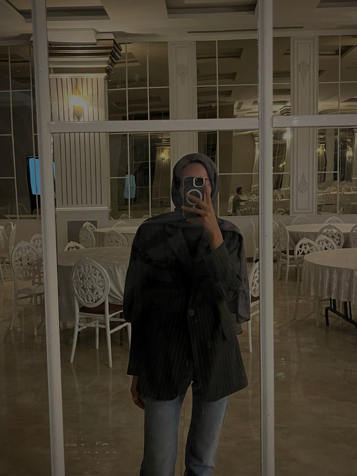 Koyu renk çizgili oversize blazer ceket. Temiz ve özenle kullanılmıştır. Her kombinle rahatlıkla kullanılabilir (jean ile çok şık duruyor ✨).