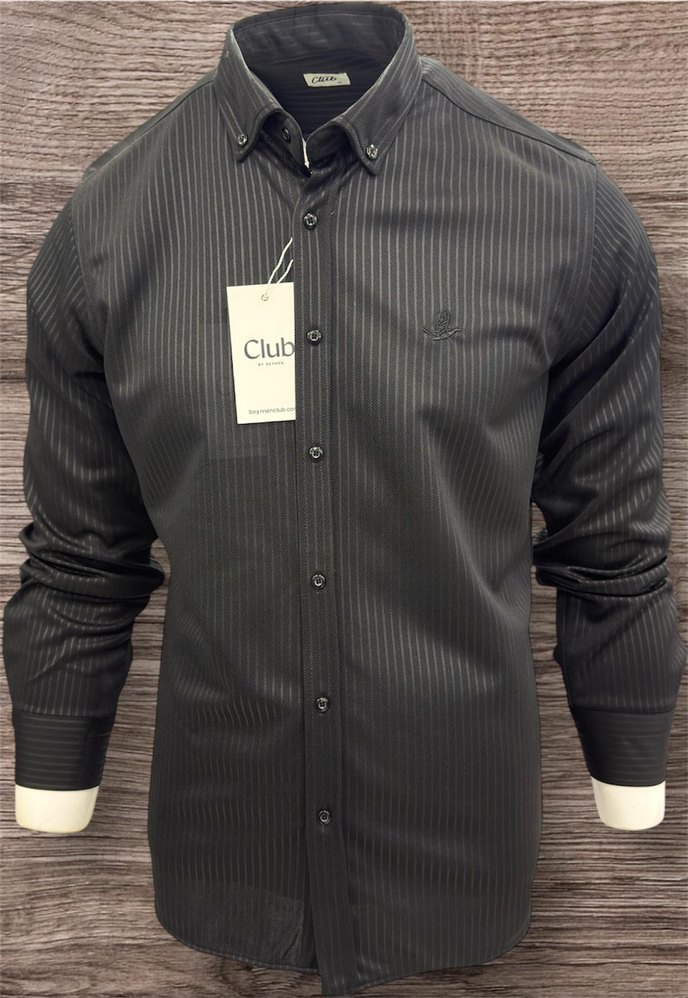 Siyah Gri Çizgili Uzun Kollu Erkek Gömlek