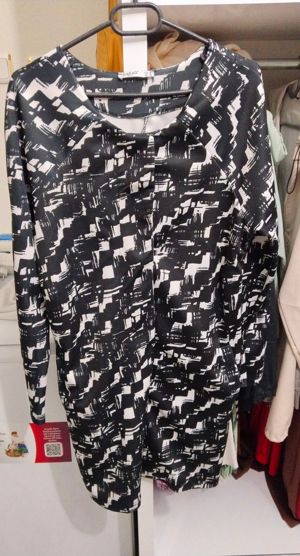 Uzun kollu, siyah ve gri desenli, bol kesim
