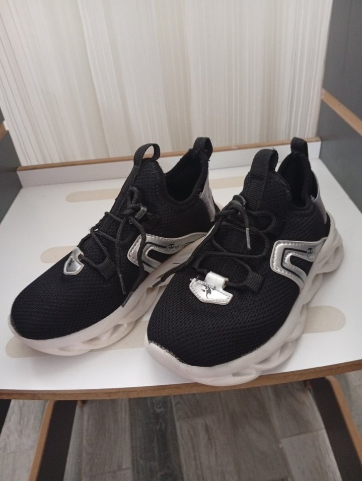 Siyah Gri Elastik Bağcıklı Spor Ayakkabı