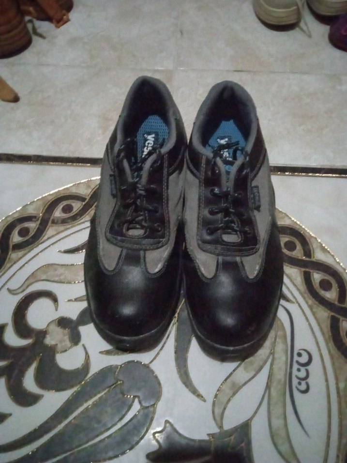 Siyah ve gri renklerde, kauçuk tabanlı,demir burunlu iş ayakkabısı.46 numaradır