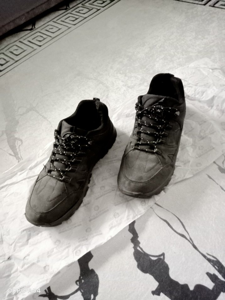 Dayanıklı kauçuk malzemeden yapılmış, tokalı, siyah ve gri renkli erkek sokak stili spor ayakkabı.